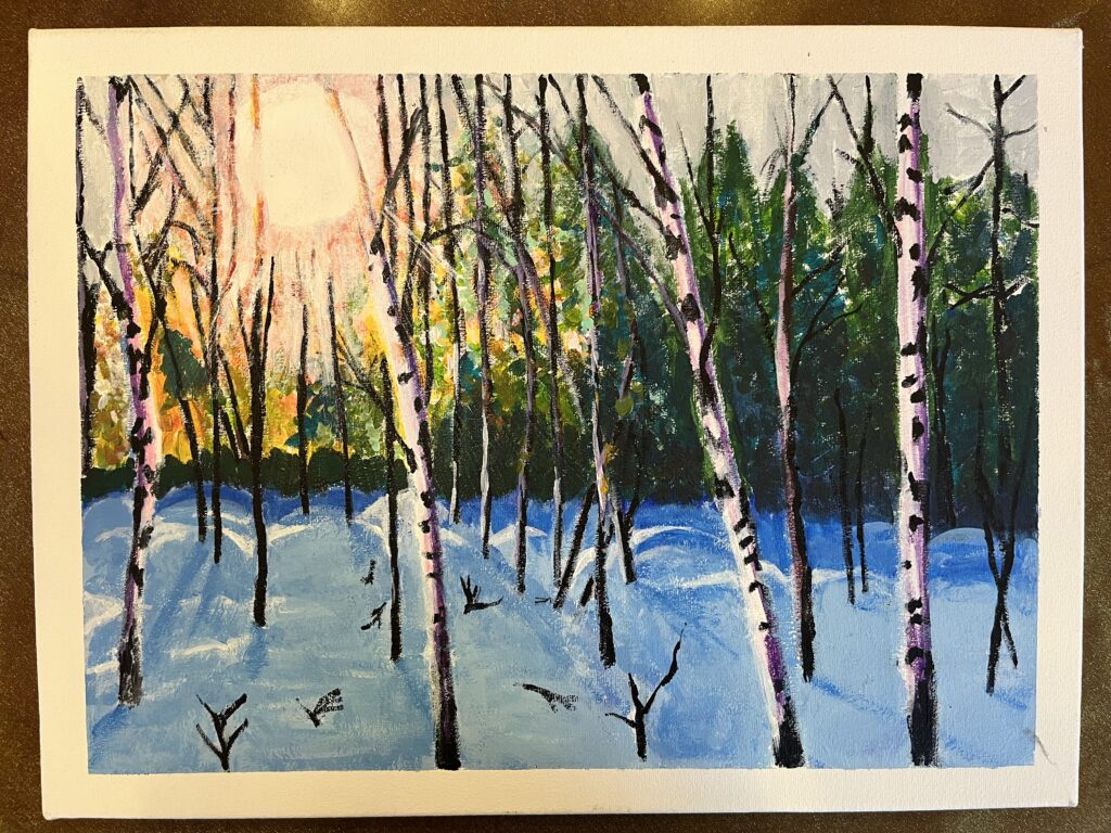 В. Івлєв “Вислизне Голе Сонце з Лазні в Морозний Гай” 2022 акрил 30×40 см