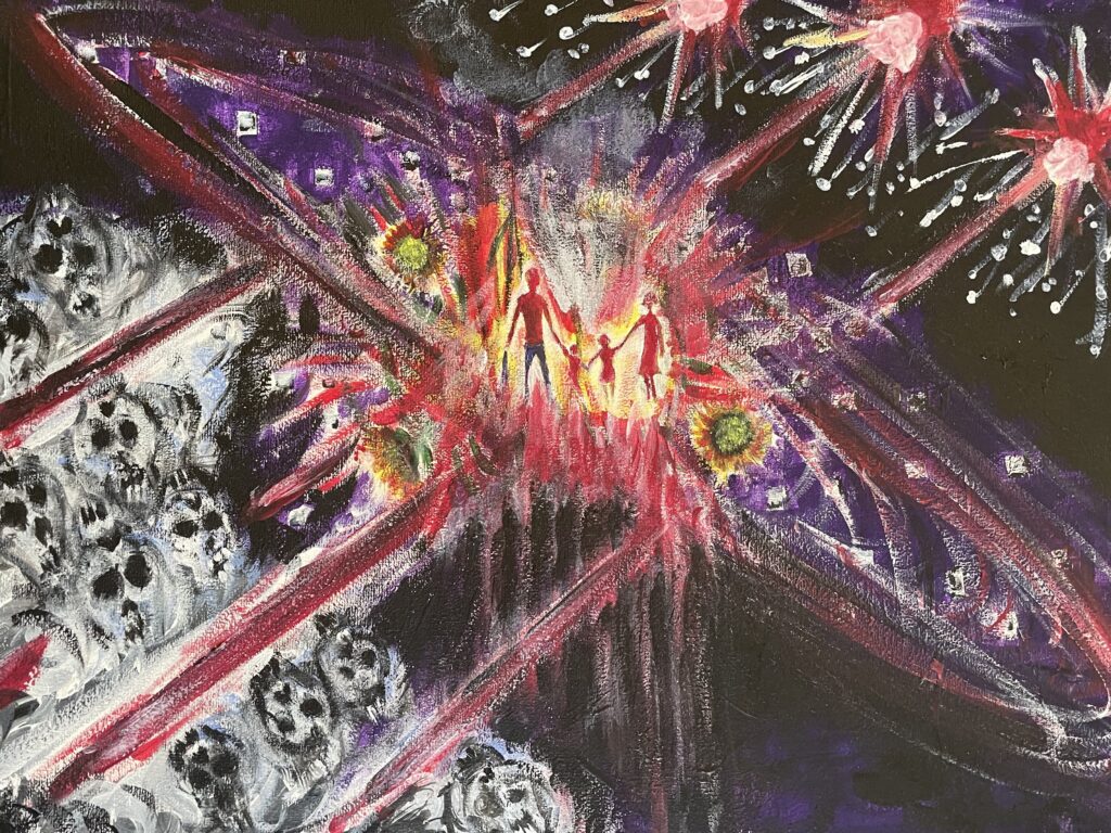 В. Івлєв “Le Bonheur contra les fleurs de guerre” 1.06.2023 акрил 30×40 см